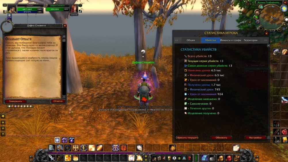 Задание на wowhead Сервер Moonwell x3. Игровой ник Палыч. Мы с Дафной отразили 3 наката, но вопросительный знак над головой Дафны серый, поэтому задание не сдается.