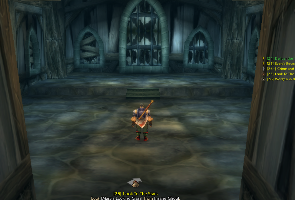 The insane Ghoul is currently missing or is not respawing in the chapel in duskwood been waiting for quite a while can only get mary's looking glass from him https://www.wowhead.com/classic/quest=177/look-to-the-stars Hamlicar is my in game chara