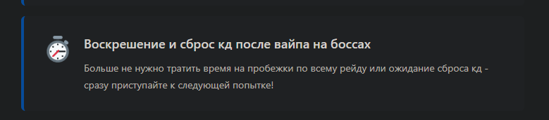 Полная и никому не нужная шляпа Сколько уже к этому приходили, но никому это не нужно, это закрывает 10 человек, которым интересно и более , чем на 2 таких рейда никто не пойдёт по причине: 1. Модификаторы устанавливаются без единого теста 2. В виду онлайна 3. В виду того, что это просто нецелесообразно и проще сходить 2 раза твинками обычный инст, чем сидеть и НЕ закрывать гер Единственное, решение, когда-то писал @Swango, по поводу гер режимов в классик данжах ( шоло, страт, убрс, брд и т.п) В остальном, что связано с ТБК контентом - никому не нужный мусор