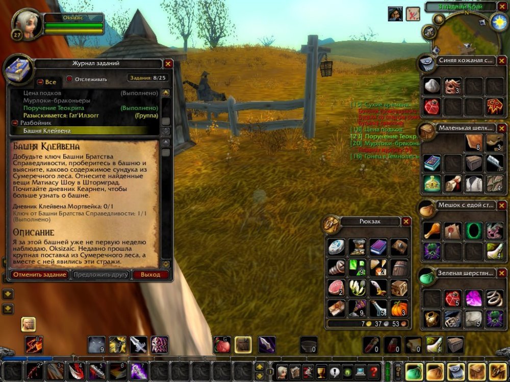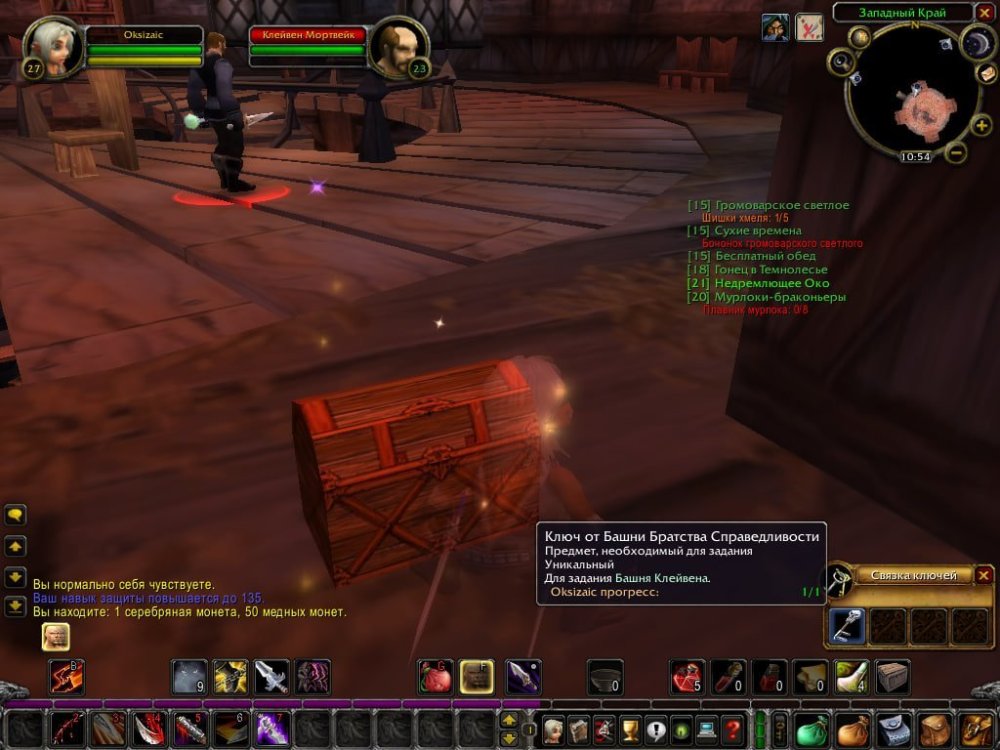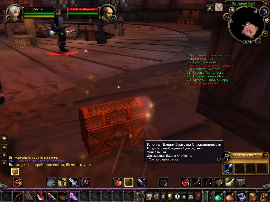 1) Для выполнения задания нужно получить с моба "Ключ Братства Справедливости", можно путём убийства или карманной кражи. Далее при помощи ключа открыть сундук наверху башни. Увы, ключ не падает. Он засчитывается в задании, но не падает мне в сумку. Скрин прилагается. 2) Для воспроизведения действий надо взять задание и убить/обокрасть нужного моба. Вам засчитает взятие ключа, но в инвентаре ключа не будет. Сундук вы открыть не сможете. Доказательство на скрине 1. 3) https://www.wowhead.com/classic/ru/item=7923/ключ-от-башни-братства-справедливости. Ссылка на wowhead. Этот предмет должен падать с моба, но не падает. Отмена и повторное взятие квеста не помогают. Данный квест является важным для разбойников, ибо позволяет им изучать яды. 4) Moonwell x5. 5) Версия ядра на скрине 2. 6) Oksizaic.