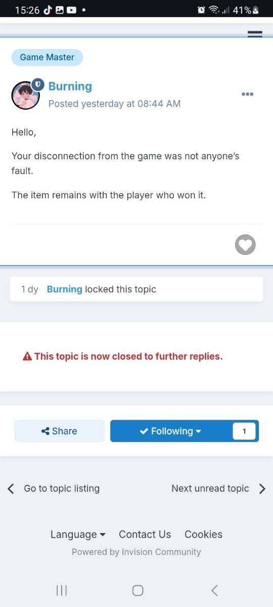 After 6+ years playing on You'r server,I think I deserve a little respect. Im not kid im 43 years and I can't stand with this kind of so called "solution's". How much I push Myself to continue playing on You'r server,that much You'r team makes me leave the server... I don't know why I lost 6 years for nothing,just to be treated like this...