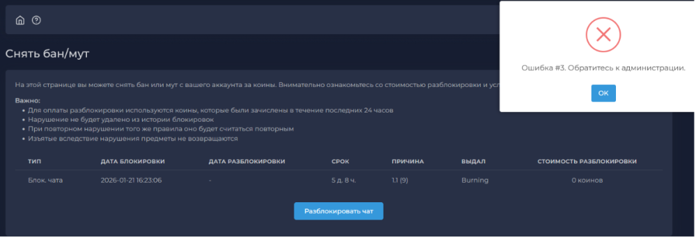 Здравствуйте, Чат игрока "Kashmar" заблокирован на 7680 минут по причине 1.1 (9)