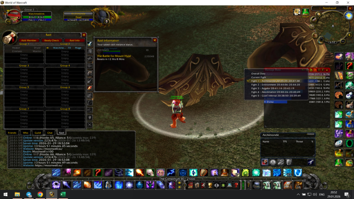 Добрый вечер, был магом в хиджале, ник 'Watchmeblink' рейд id 235048. На архимонде босс подкинул вверх, я прожал блинк и ушел в текстуры, реснулся вне инста, после чего не вижу лут, прошу проверить и отправить душу, спасибо