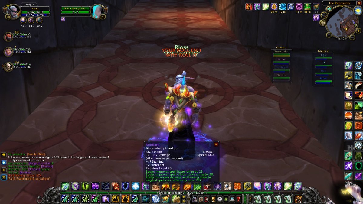 raid id :241209 char: nzk He said in raid chat he roll enhance shaman main spec but he needed Sunflare . plz punish & redistribute item.