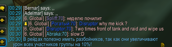 Рл с ником "Disruptor" взял в рейд в БТ с ID 239063 шли рейд, всё было гуд.. начали на треше в сторону мамки вайпаться по тупости и контролю, я сагрил треш из-за того что меня взяло в контроль и я типа вайпнул рейд, хотя не по моей вине уже до этого случая уже вайпались на 1м же паке в торону сестёр. меня кикнули с рейда с пояснениями : [Disruptor]: Two times front of tank and raid and wipe us Естественно предупреждений не было, что возможен будет кик с рейда, за просто случайный не первый вайп на треше.