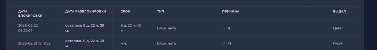 Мне дали мут на 4 часа за слова «сосешь за Голду?» да я перегнул Что так написал по отношению к девушке, парню бы тоже самое написал) ну мы поняли друг друга