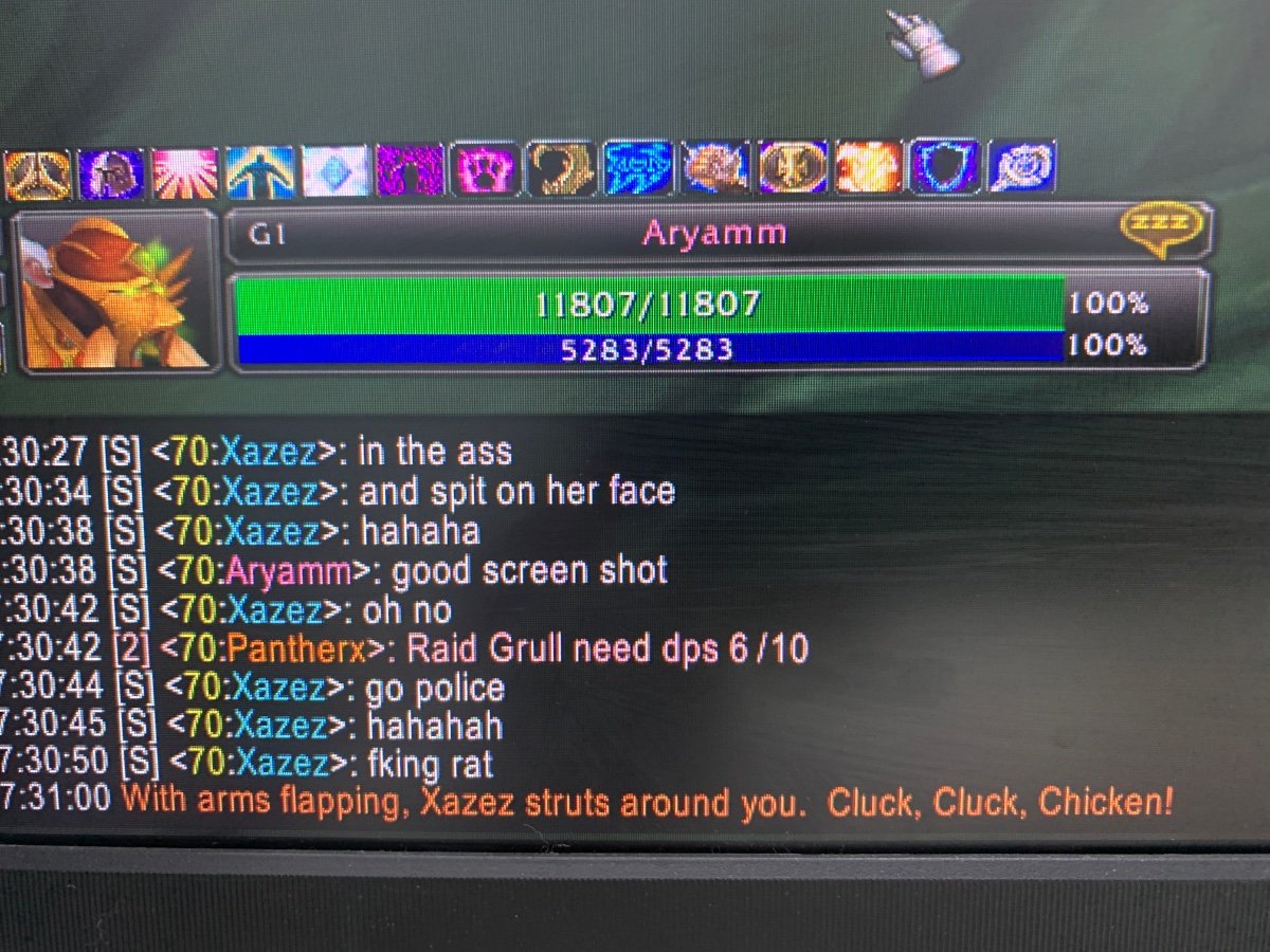 @ZakiDeni I cant remember evrything. I wasnt focused on that in the moment I was creating Raid Group for Sunwell which We finished whole SWP with 0 wipes,I was Raid Leader ( In the meantime I saw something which need Sha'tar Reputation so I didnt want to loose time to think which Solo Heroic dungeon gives Sha'tar reputation so I asked in Global chat to get the answer quickly to not loose time I know theres some people who know how to play this game in a professional level (not like You who play like he started yesterday to play wow) ,and ofcourse I got 4-5 whispers from Pro-Players (Playing Proffesionally) and with Knowledge about the things ingame.. Btw,what is Your main character name? To know to never take You in my raids....