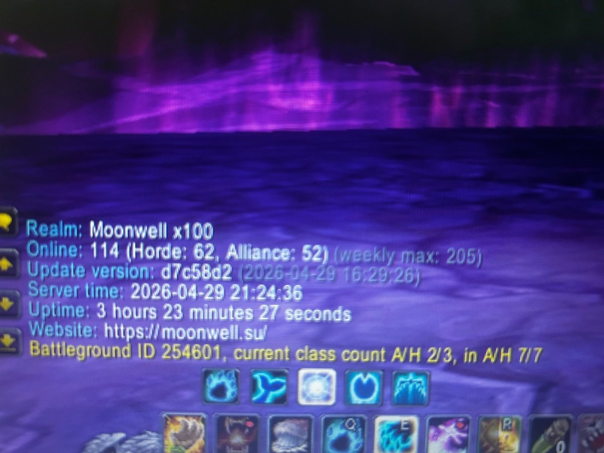 Yesterday, on Sunday, Moonwell x5 set a new all-time online record - 2347 players, the highest in the entire history of the server. Evening Alterac Valley 40v40 every day Groups and raids form without issues Up to 15 teams in arena queue during prime time Many new guilds progressing through T6 content Server latency stays at a minimum across all locations - 50ms Moonwell has been running since 2011, and we've come a long way together with you over these years. Now the server stands on the verge of its next big step - the transition to a new core, which will bring the server to a whole new level of quality. We'll share more details in upcoming announcements. For now - thank you for staying with us and keeping the server alive!