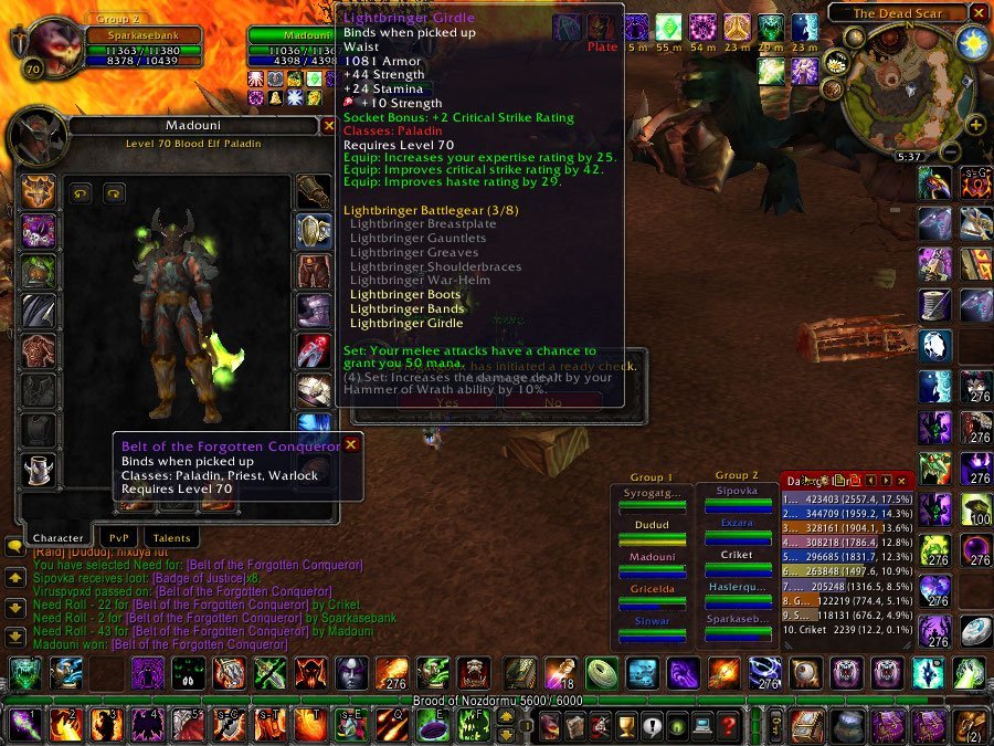 1. (Kicking without reason) Hello,today We we're in Sunwell Plateu (Syrogatgodx was leading till last boss then after several wipes He gave up and gave the "Raid Leader" to player Leatherhead,who has complexes from Me and hates Me alot,from the moment He joined the raid,before one of many attempts on Kil'jaeden) the "New Raid Leader "Leatherhead" before becoming Raid Leader was telling to the current Raid leader to kick Me (but there was no reason for doing it and that player is playing fair-play),when He "Leatherhead" become Raid Leader kicked me from the raid without any possible reason... 2: When we killed boss Brutallus droped the tokens for t6 belt Belt of the Forgotten Conqueror 2 players (Criket & Madouni) who allready had the belt (and they was rolling for their main spec Criket for Healer,You can confirgm that with seeing him rolling for cloth chest for healer who dropped from boss M'uru and Madouni (retribution paladin was rolling for retribution spec) they both even though allready had the belt equiped on them rolled "Need" for it on both tokens... which I don't have it and I clicked need but lost the item becouse of them rolling "need" (that mean rolling for main spec Criket/Heal , Madouni/Retribution even they had the belts equiped allredy,as I know from previous expirience its not allowed on this server to roll for an item which You allredy have,and becouse they both said they rolled for offspec they should've click "Greed" not "Need" otherwise that considers as "Ninja-ing" Raid ID : 252976 Here's photos of Criket & Madouni seconds after winning the tokens for t6 belt (wearing the belts which means rolling for item they allready have aka Ninja-ing the token for t6 belt from me Sparkasebank)