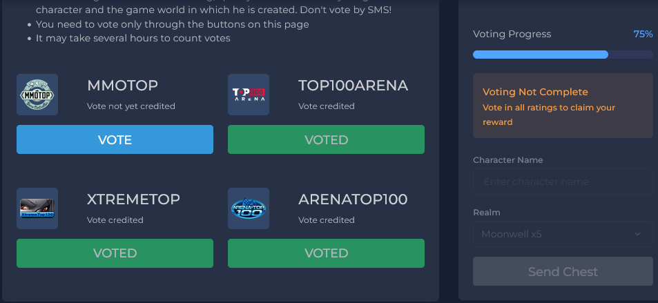 Засчитывание работает. Убедитесь, что правильно вводите ник персонажа и игровой мир.