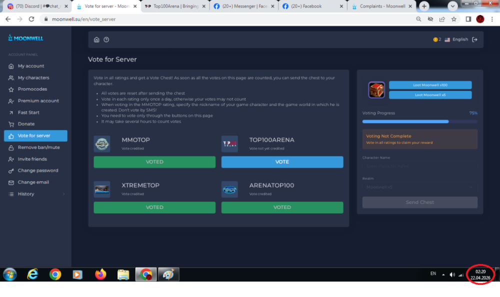 I voted website took count as its been around 4 hours since i voted but never updated to my moonwell account page . Not sure if its a bug or what.