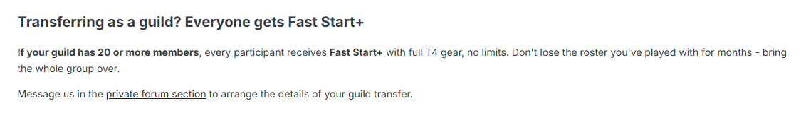 Hello. All conditions are outlined on the Fast Start page. It states that you receive a standard Fast Start. However, if you submit the appropriate application and coordinate it with us, your entire guild will receive Fast Start+. This is a required condition.