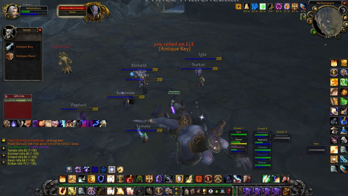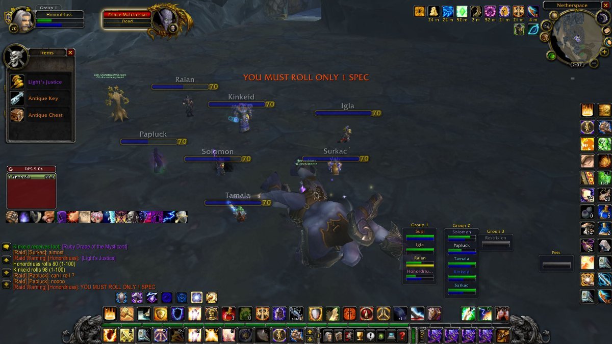 Raid Karazhan id 34022 was composed and led by the nick "Fusk", who warned that each player can only roll items into one specialization. He wrote this several times during the raid and gave himself master loot for each boss and distributed the items. I chose the holy specialization for the rolling option, but since I have this equipment insufficient for the raid, I was forced to play the protection specialization most of the time, but when I could, I played the holy specialization (see screen 1.). During the entire raid, I passed almost all items, because they were better for healers for certain classes (cloth, leather and possibly mail). For tanking items, it was especially for the feral druid.