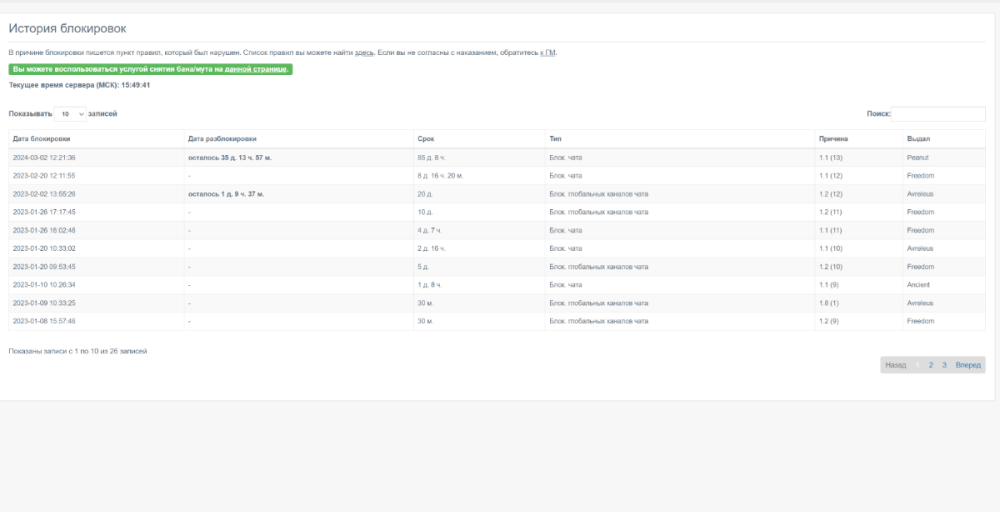 1. Всётаки хочу чтобы бан был снят чата и тогда смогу играть на сервере. На сервере х5 я не чег оне нарушал но бан там есть), что расстраивает крайне. Онлайна и так нету, может амнистию дать всем? Это отток игроков производит.