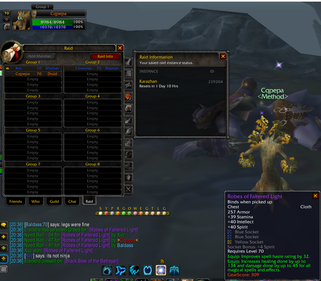 4. В рейде Кары Шаман с ником "Xvz" выролил шмотку не на свой спек... Прошу отдать следующему по Роллу.