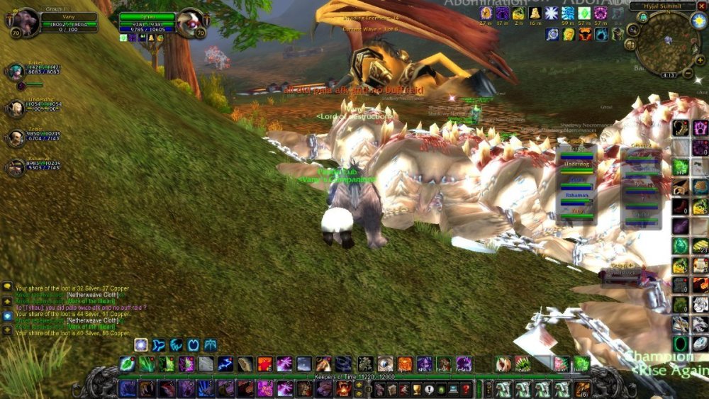 hi game play this raid 206791 i inv HACKYOURHOLY PALA boss 3 hyjal he is beny i know him he have more problam wait me and he start afk and no buff 2x boss i say him here but he afk he come back after kick start care i have more pic for what happend and all did this . pls game master check and look he say for ban all know me in game i dont have any problam or care he come back some time other name my raid for make ban me thank you check it pls.